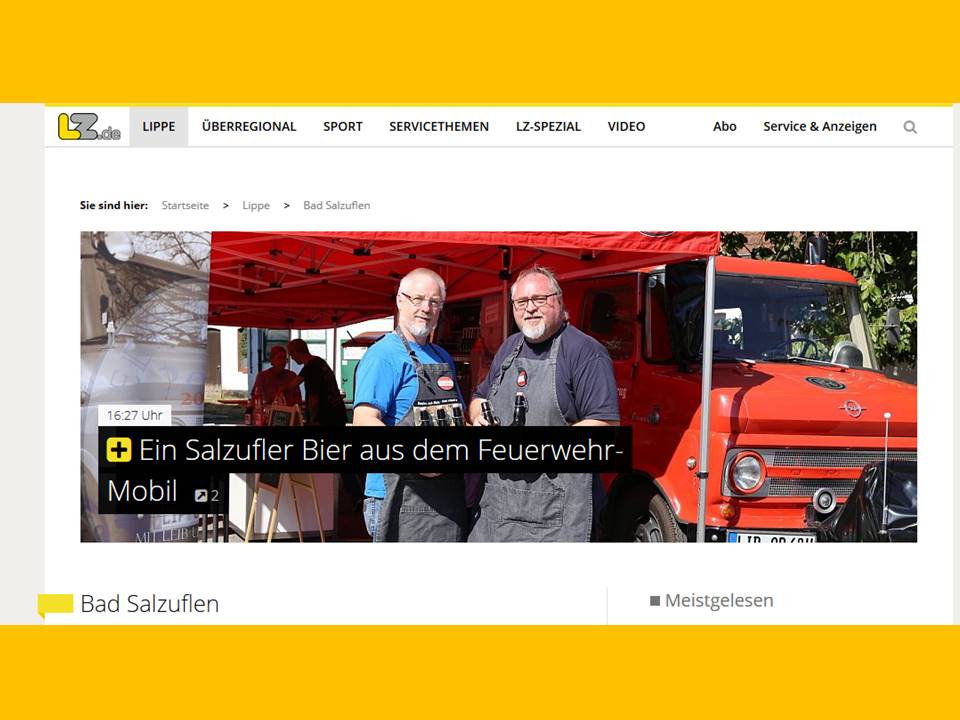 Der rot schillernde Opel-Blitz Rundhauber lässt wohl schon für sich zahlreiche Herzen schneller schlagen, doch der Umstand, dass es sich dabei um eine alte Feuerwehr mit eingebauter Gastronomie handelt, macht das Ganze zu einem besonderen Highlight. Und weil dieses Konzept seit nunmehr fünf Jahren aufgeht, war dem Salzufler Betreiber das eine eigene Bierkreation wert.